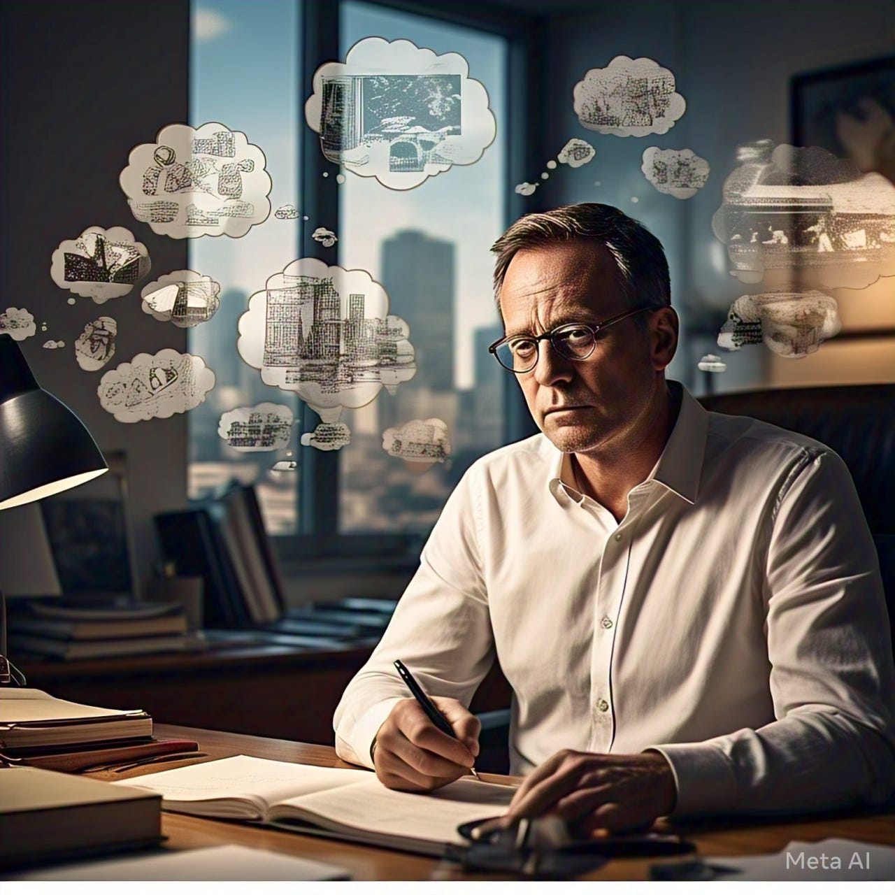 P.S.: Image made on Meta AI using the prompt, “Imagine an entrepreneur who is writing in their journal reflecting on their past journey and all the memories of the past (regarding building and growing the business) being displayed in thought bubbles”