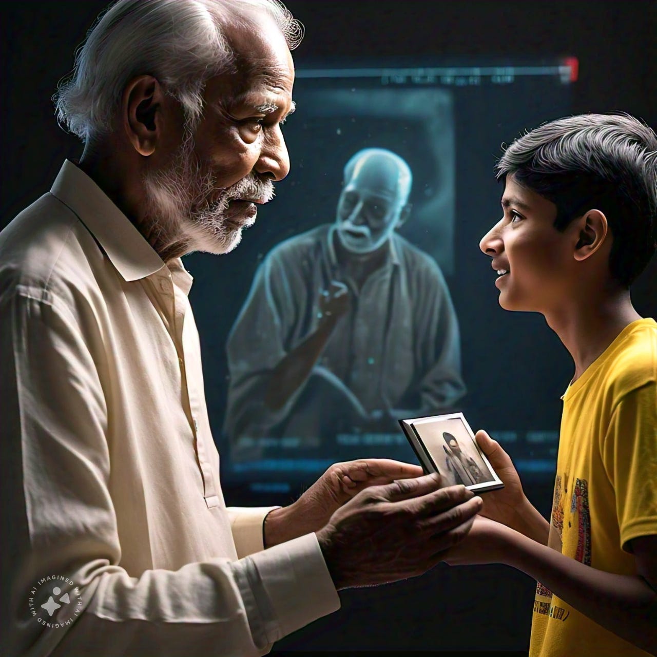 P.S.: Image made on Meta AI using the prompt, “Imagine an image where a 70-year-old Indian is looking at a 15-year-old version of himself telling him how proud he is of all the achievements”