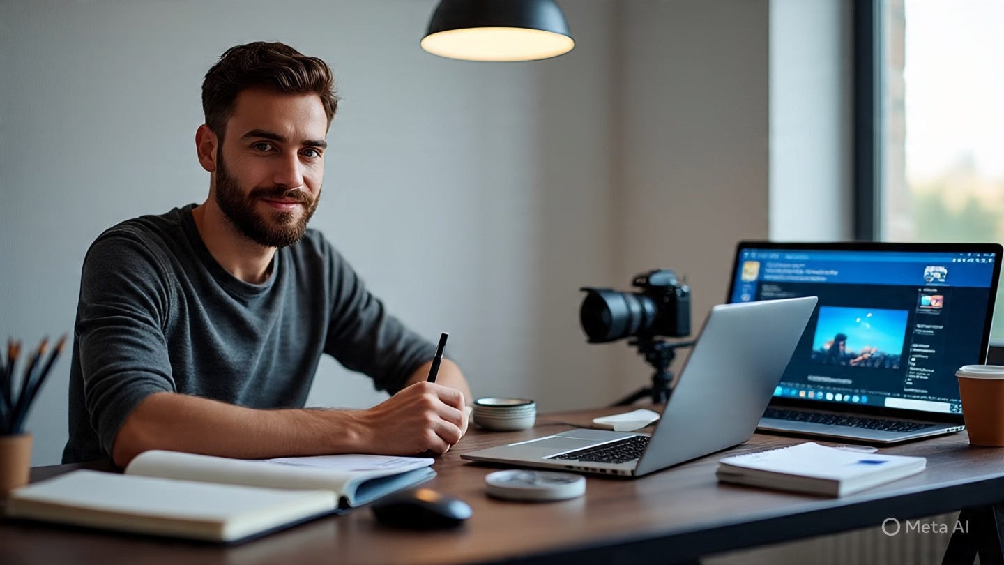 P.S.: Image made on Meta AI using the prompt, “Create an image of a new age entrepreneur who's creating a product after having a lot of conversations with their community because they are also a content creator”