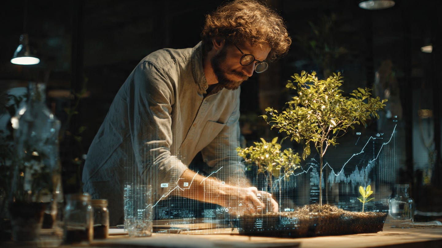 P.S.: Image made on Meta AI using the prompt, “Create an image of a realistic 16:9 banner image of an entrepreneur planting seeds in a modern workspace metaphorically, digital icons of content, trust, and value sprouting into large trees or upward graphs. Warm, patient mood. Cinematic lighting. Space for text overlay. Symbolizes delayed gratification in business.”