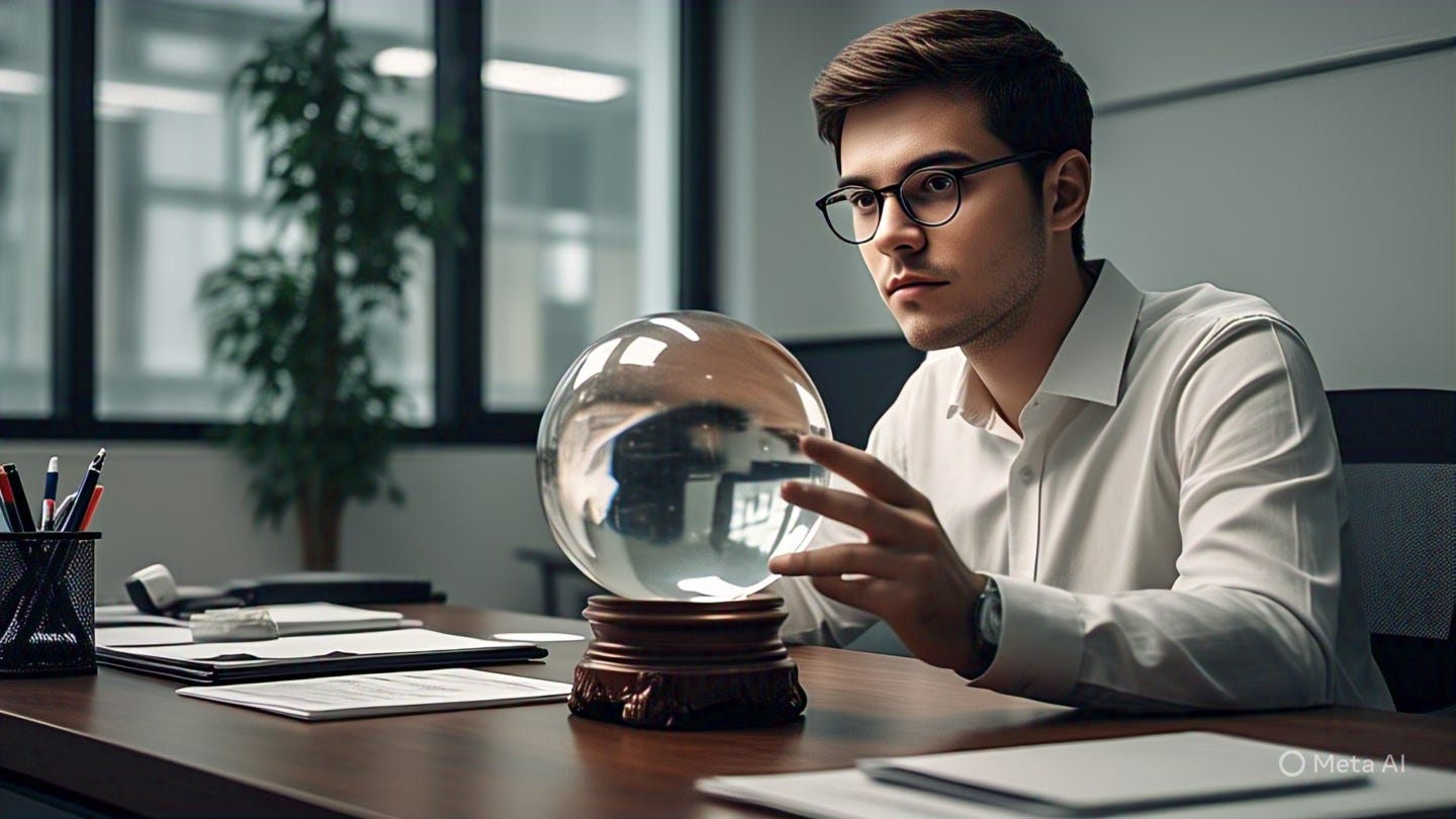P.S.: Image made on Meta AI using the prompt, “Imagine a working professional in their twenties gazing into a crystal ball looking at the future of the company”