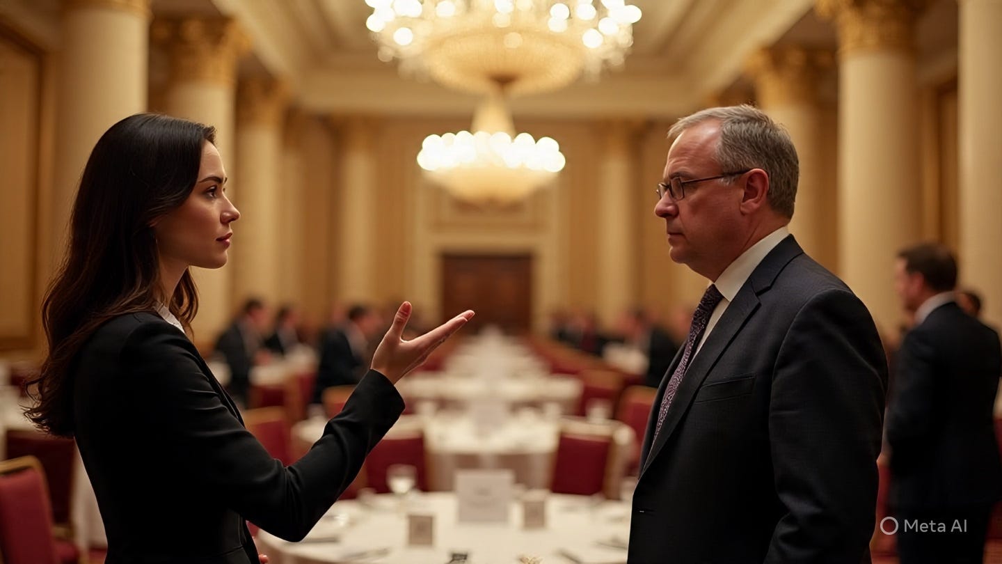 P.S.: Image made on Meta AI using the prompt, “Imagine someone making an elevator pitch to a disinterested executive in a networking event that's happening in a esteemed hotel”