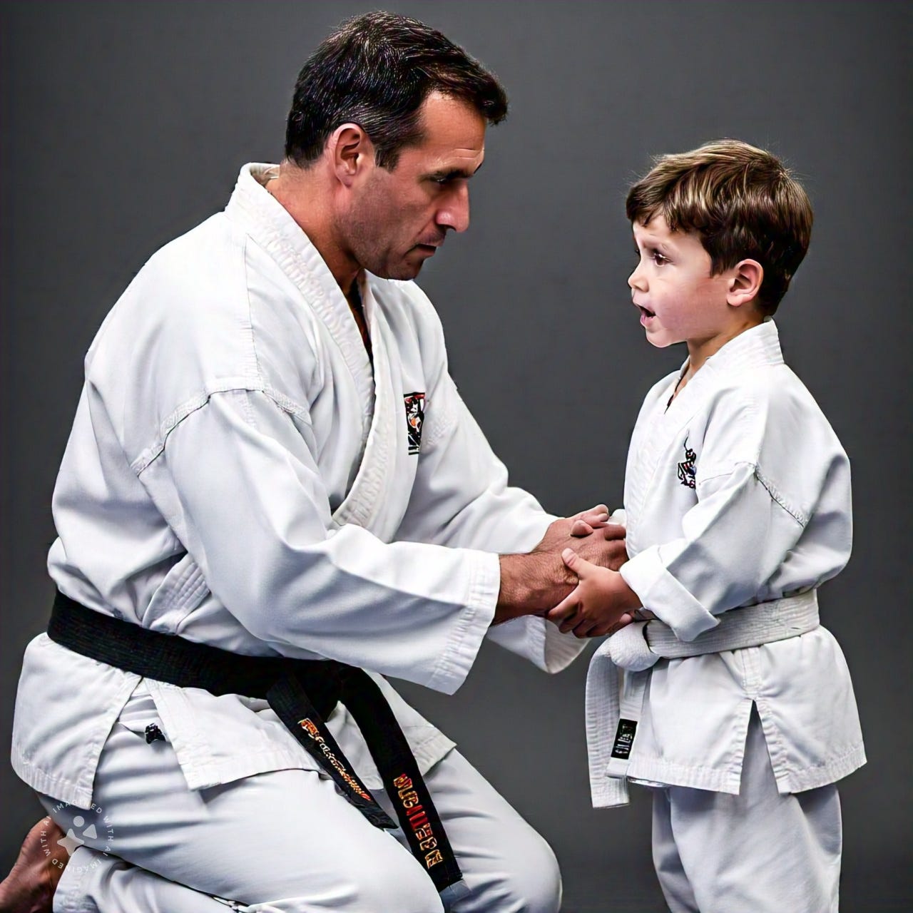 P.S.: Image made on Meta AI using the prompt, “Imagine a karate black belt on their knees bowing down to a new student who's a 5-year-old kid with a white belt”