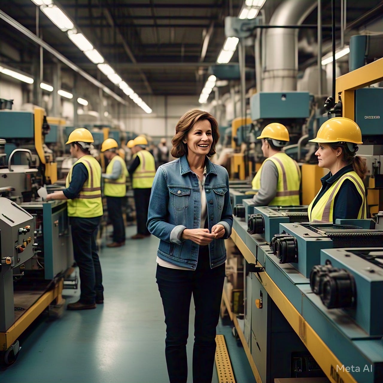 P.S.: Image made on Meta AI using the prompt, “Imagine a business owner who is standing on the factory floor talking to the team working the shift”