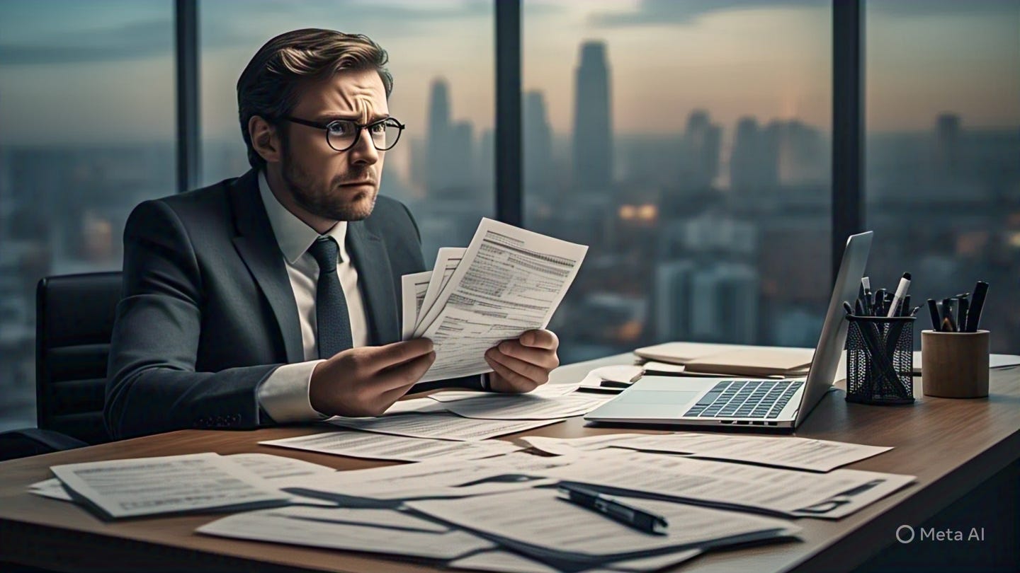 P.S.: Image made on Meta AI using the prompt, “Imagine a really smart person looking absolutely stressed about money as they check their bank statement printouts”