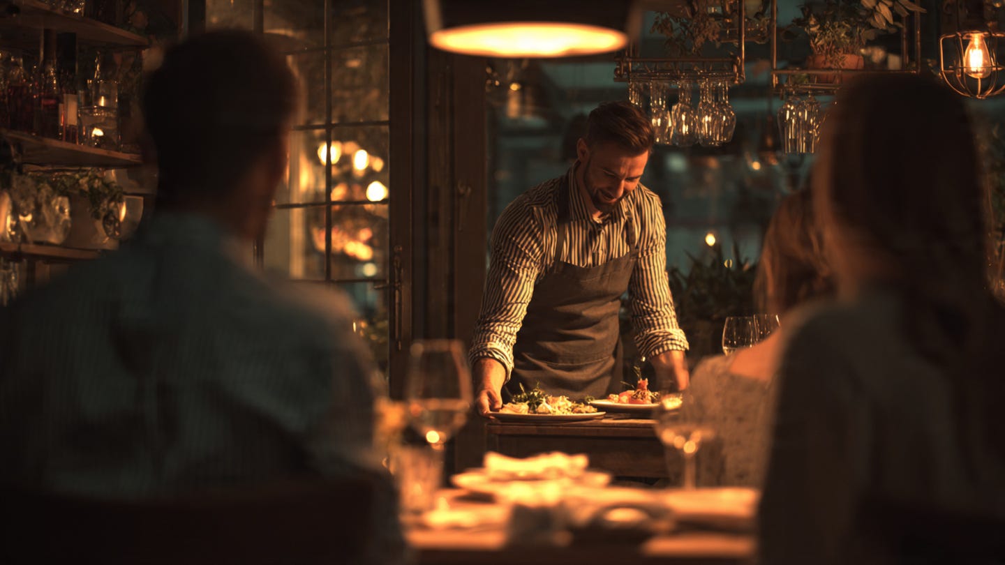 P.S.: Image made on ChatGPT using the prompt, “Create an image of a realistic 16:9 image of a restaurant owner personally serving a table, making eye contact with customers. Warm lighting. Authentic setting. Human connection and care visible. No text or logos.”