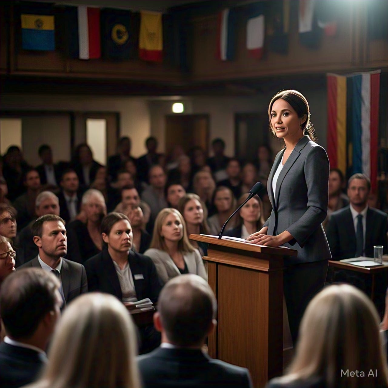 P.S.: Image made on Meta AI using the prompt, “Imagine a leader who's addressing a large audience in a town hall meeting and everyone is mesmerised”
