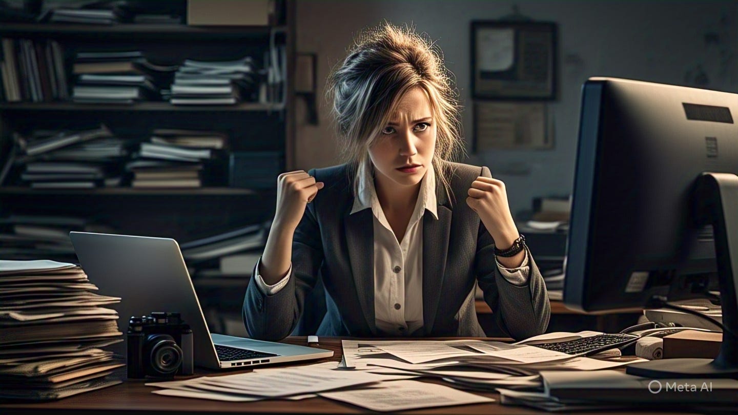 P.S.: Image made on Meta AI using the prompt, “Imagine a business owner who is also a content creator who is completely irritated, trying to face the camera, feeling lost because they don't know what kind of content to create”