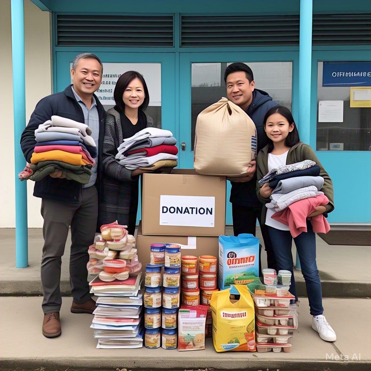 P.S.: Image made on Meta AI using the prompt, “Imagine a financially free person (and their family) contributing food, books, clothes to an orphanage”