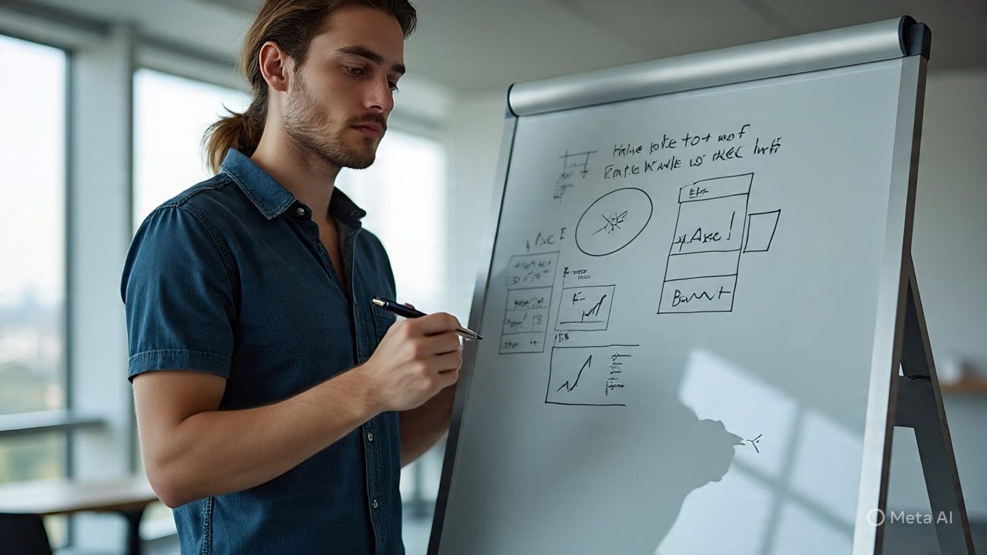 P.S.: Image made on Meta AI using the prompt, “Create an image of an entrepreneur in the making in front of a whiteboard trying to copy the business model of successful brand in their business”