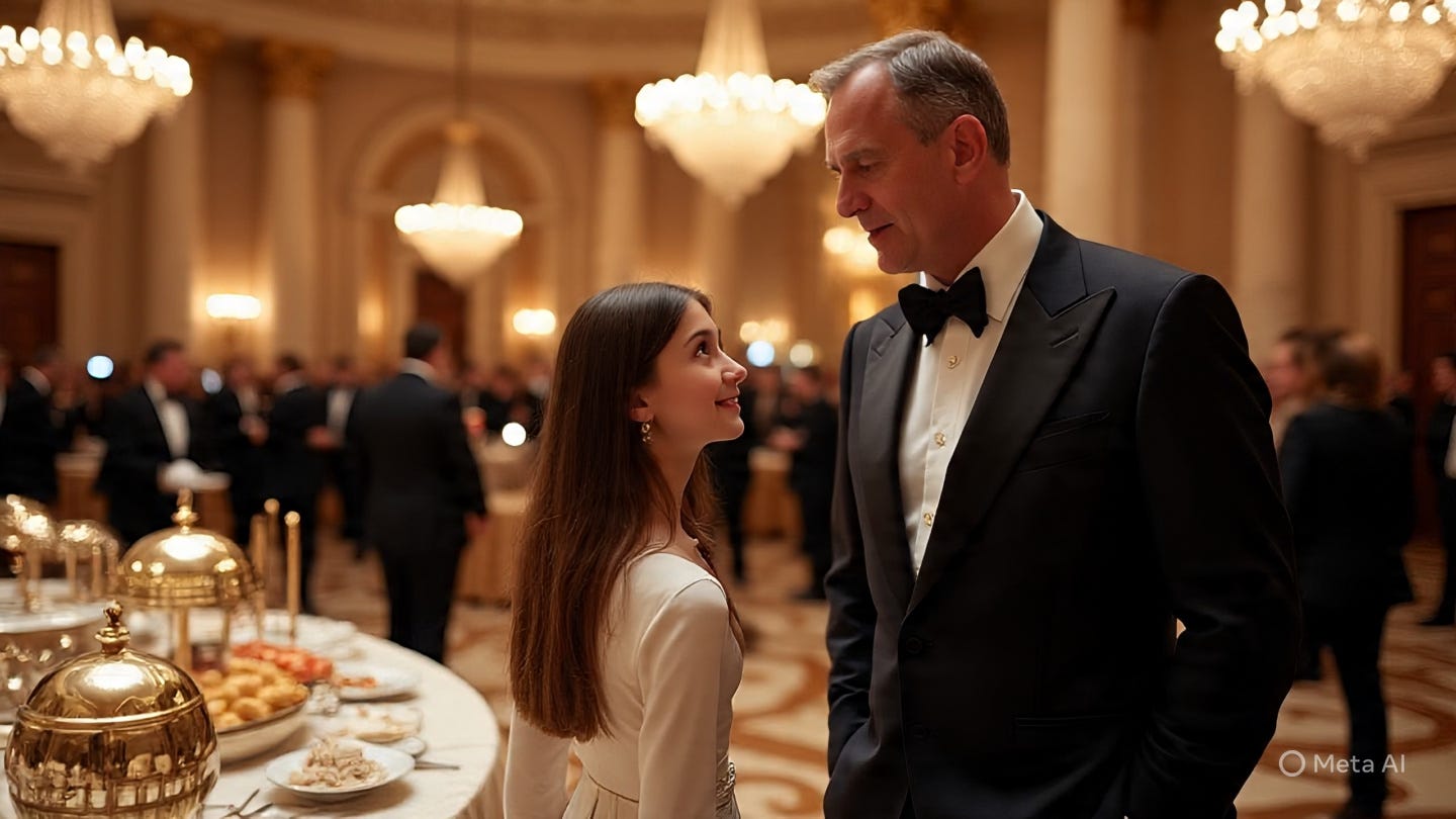 P.S.: Image made on Meta AI using the prompt, “Imagine a party where a billionaire in his fifties is mentoring and talking to an aspirational girl who is in her late teens”