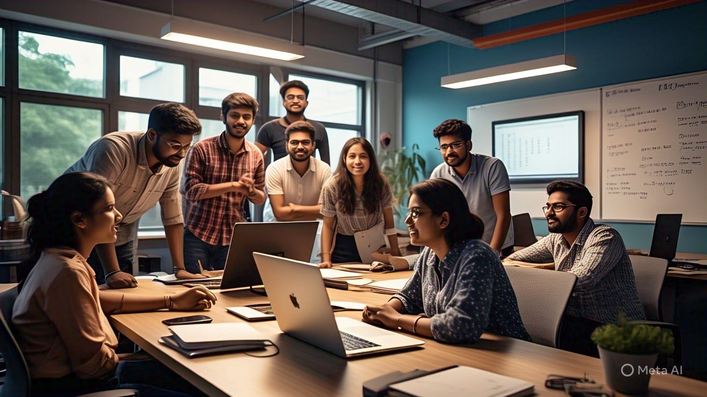 P.S.: Image made on Meta AI using the prompt, “Imagine an agency based out of India with a team of 10-12 young people who seem motivated, happy and driven as a team”