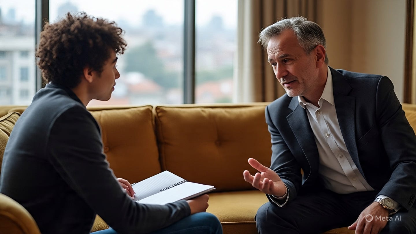 P.S.: Image made on Meta AI using the prompt, “Create an image of a rich mentor speaking to a young struggling mentee and teaching them about money”