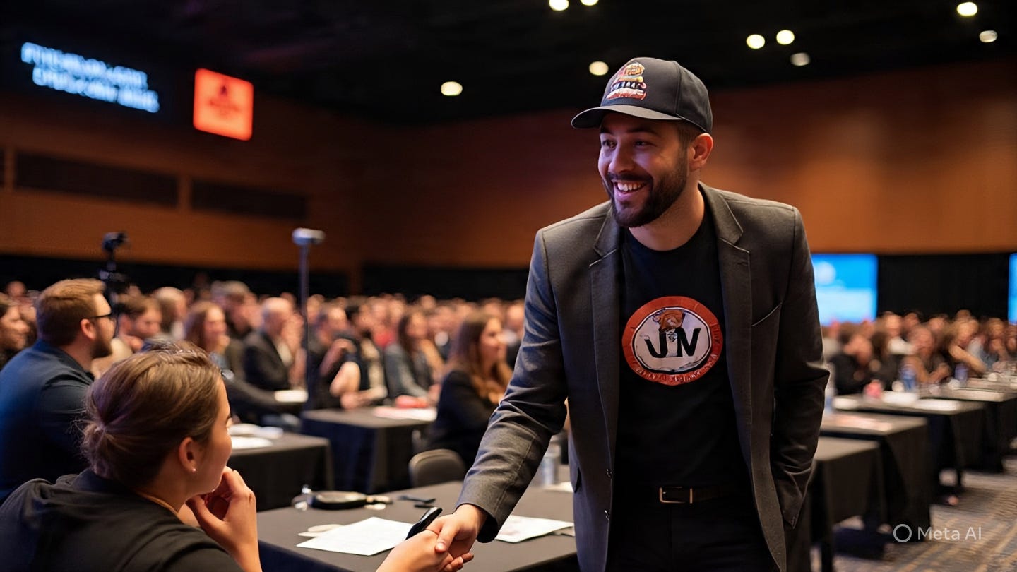 P.S.: Image made on Meta AI using the prompt, “Create an image of a business owner who is also a popular content creator at a meet and greet with the audience”
